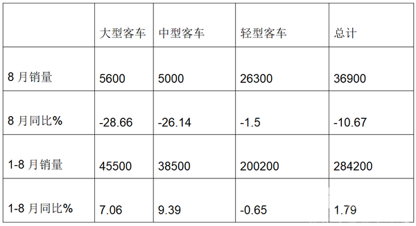 根据中汽协数据,2018年8月及1-8月大中轻客车销量数据统计及同比