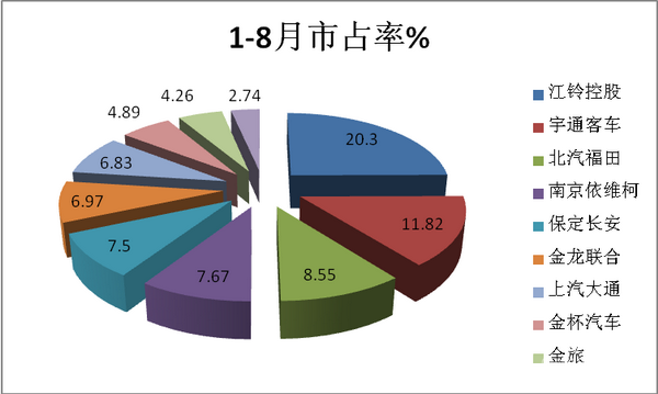 2、1-8月前10名客车销量企业及市占率统计: