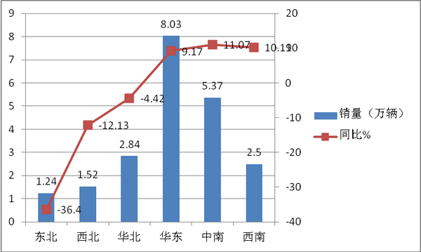 可见,区域流向很不平衡,经济发达地区客车销量相对较多,增速也相对较好。反之,则较差。