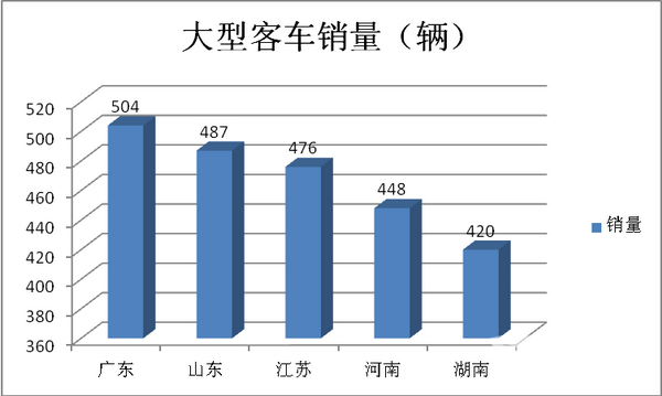 可见,大型客车是广东区域销量最多,中型客车销量最多的是河南区域,而轻客销量最多的区域是江苏市场。