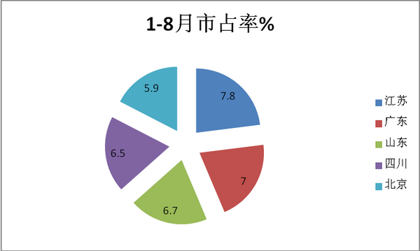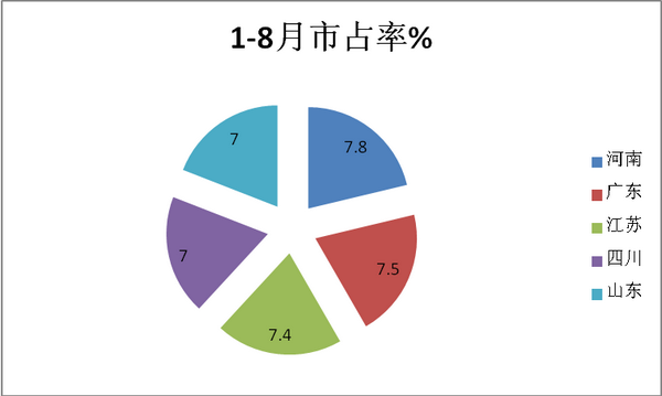 1-8月市占率% |