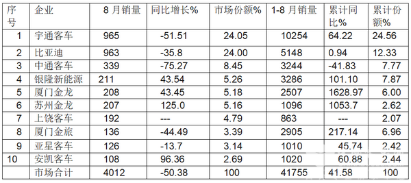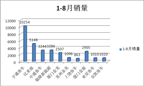 (注:银隆新能源去年8月和1-8月同期销量数据不详,故在此引用其去年同期合格证产量数据)。