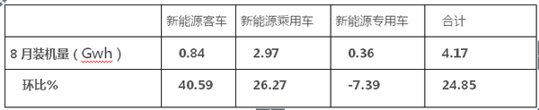 根据动力电池应用分会研究部统计数据显示,8月新能源客车电池装机量环比增幅在新能源汽车中最大