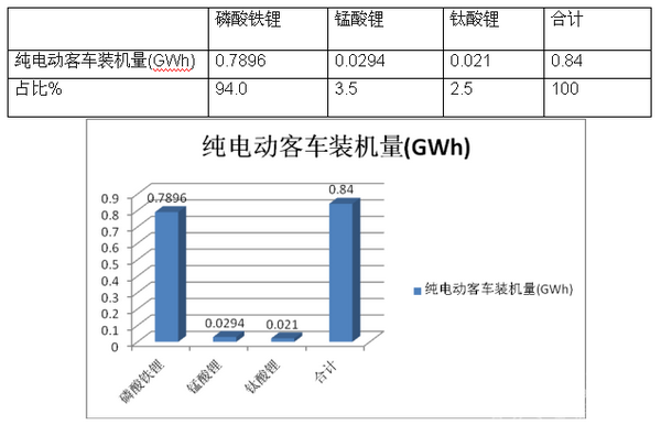 特点三:纯电动客车中,以安全性能最优的磷酸铁锂电池装机量占比94%,其次是钛酸锂电池占比3.5%;再次是锰酸锂电池占比为2.5%