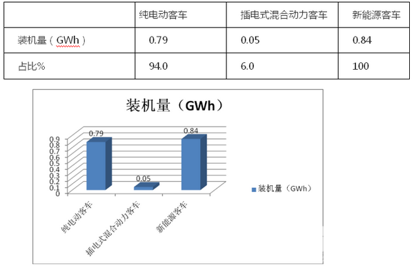 1、新能源客车电池装机量在2018年8月的新能源汽车电池装机量中,为0.84 GWh,占比为20.14%,处于第二(第一是新能源乘用车)