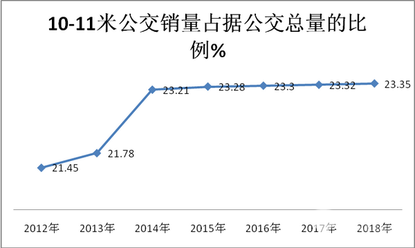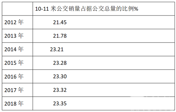 根据上牌数据统计计算,近7年1-8月10-11米公交占据公交总量的比例大致如下:
