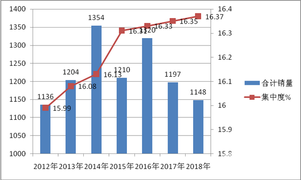 特点一、销量同比均增长,市场集中度同比上升,占据同类车型的份额始终在16%左右振荡