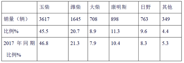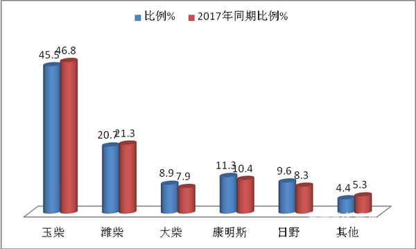1、玉柴发动机占据了五大区域11-12米公路客车45.5%的比例,居于第一,其次潍柴发动机,占据了20.7%的比例,进口发动机主要以康明斯为主,占据了11.3%,其次日野发动机占据了9.6%。同时还可以看出,国产发动机的比例稍微有所下降,进口发动机的品牌同比有所提高。这给大客车制造企业在五大区域市场营销方面提供了具体的参考依据。