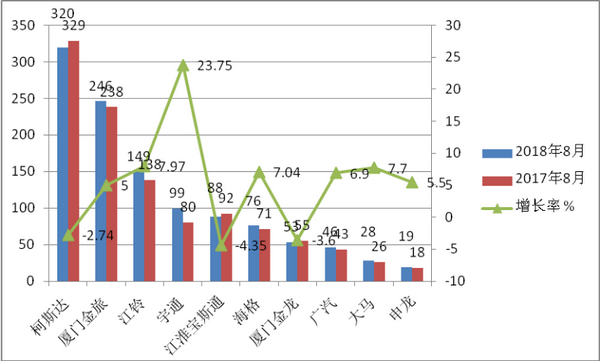 2018年8月考斯特客车市场特点简析
