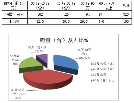 从上分析可以看出:丰田柯斯达价格在40-50万之间的产品销量比例最大,其次是30-40万的价格区间;60万以上的高档销售比例最小。
