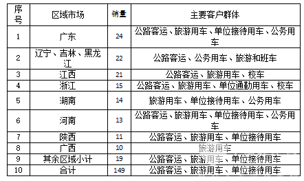 (二)、江铃考斯特:江铃考斯特2018年8月销量149台,销售区域在广东、东北、江西、浙江等区域市场,目标客户群体主要是旅游客运和公路客运。