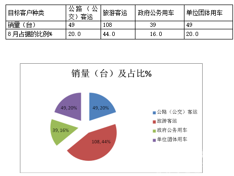 2087年8月份,国产品牌中最大销量的小金龙考斯特,主要细分市场用于旅游客运领域,其次是公路(公交)客运领域,再次是单位团体客车领域,政府公务用车领域为最少,主要原因是三公费用得到了限制,公款旅游市场受到了制约。
