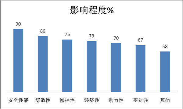 在性能之标中,个人用户最关注的安全性、舒适性、易操作性和经济性能、动力性能等,同比,只有对动力性的要求稍微降低了,其余指标均提高。