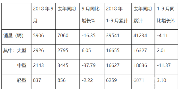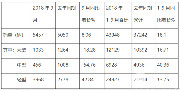 根据中通客车10月8日发布的最新公告,2018年9月及1-9月销量数据如下: