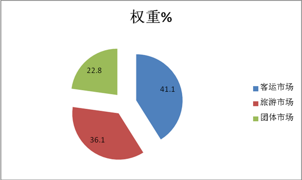 2、 旅游客运市场销量同比增幅最大,占据的权重为次大。