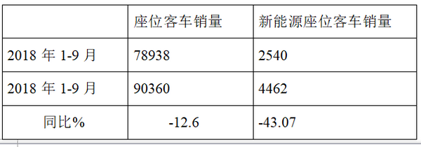 根据数据统计,2018年1-9月新能源座位客车销量与同期比较统计