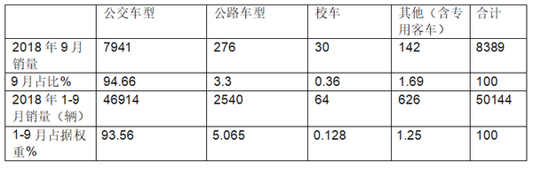 1、公交车仍然是9月及1-9月新能源客车销量的主力,占比均超过93%,主要是因为公交需求比较大,同时,公交车辆容易跑满2万公里,客车企业补贴容易拿到。