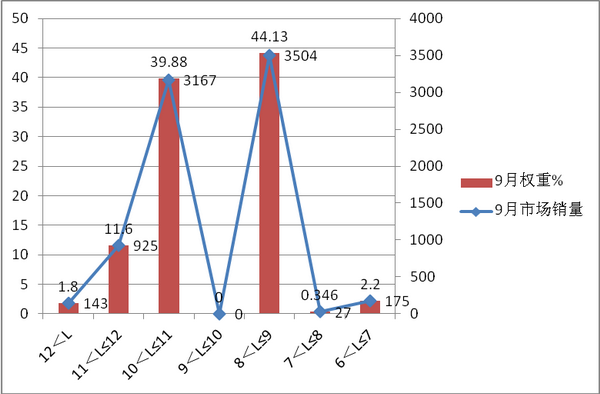 特点四:9月及前9月新能源公交中,10-11米销量权重次大;8-9米同比增权重最大,发展势头最强劲,说明城乡公交对新能源客车需求势头旺盛
