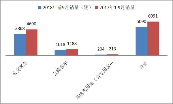 1、公交市场仍然是2018年前9月天然气客车需求最大的细分市场,占比为76%,且同比权重下降了1个百分点。