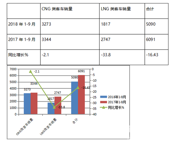 1、天然气价格近期上涨是导致燃气类客车成本增大的主要原因,从而导致燃气客车的销量萎缩。尤其是LNG类价格涨幅更大(CNG价格微涨,变动不大)。根据了解,很多地区LNG类近期价格每吨涨幅在几百元甚至千元以上,达到每吨价格在5000元以上,有些区域价格更高,这无疑使得燃气类客车尤其是LNG类客车的价格与燃油类客车比优势不再。这也解释了2018年1-9月为何LNG类客车降幅远远大于CNG类客车了。