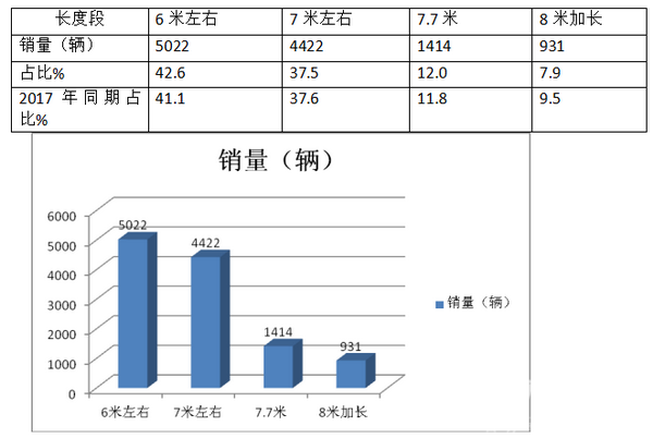 上牌数据显示,2018年前三季度考斯特客车按长度段划分销量结构统计表