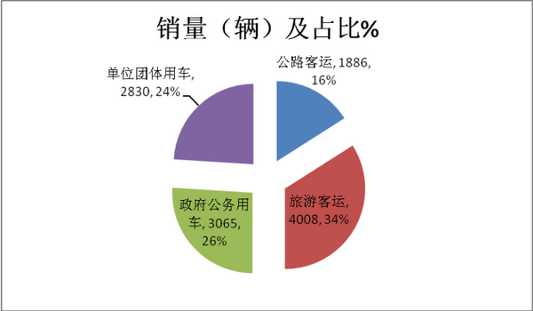1、按目标客户群划分,旅游客运车型销量权重最大,且同比增加。