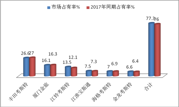 综上所述,2018年1-9月主流企业中高端考斯特车型在市场份额一定的情况下,在政府公务用车和公路客车的比例下降情况下,在旅游、团体用车市场的比例上升是市场发展的必然。