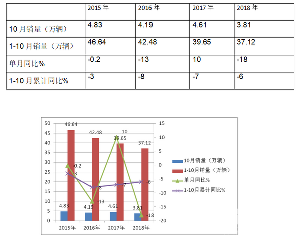 2、2018年10月3.81万辆的成绩是4年来最低。