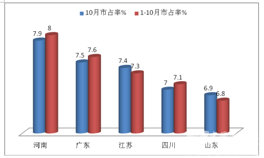 2、中型客车河南区域销量最多