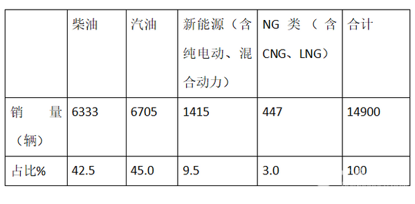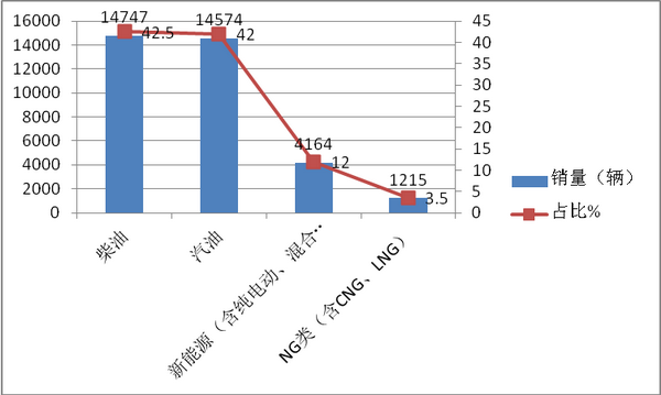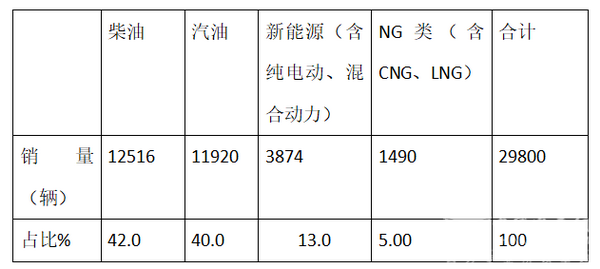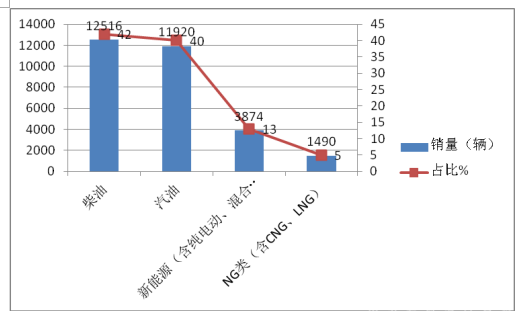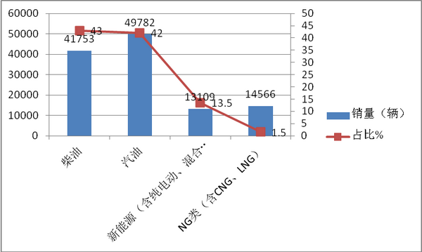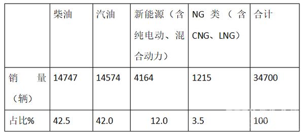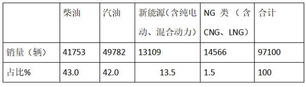 根据上牌信息统计,2018年1-10月中南版块按照发动机种类划分销量结构表