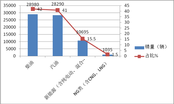 根据上牌信息统计,2018年1-10月华东版块按照发动机种类划分销量结构表