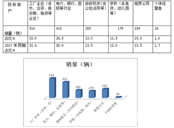 特点一:工厂通勤是最大的目标市场,同比上升;政府部门接待用车权重下降,租赁行业权重同比上升幅度最大