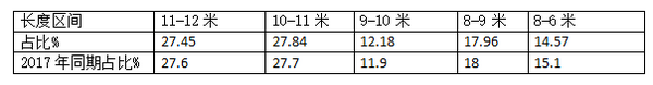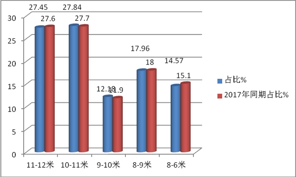 各长度段细分车型中,10-11米车型销量占比达到27.84%,为最大,且同比权重微增。主要是10.5米长度车型性价比比较高,很受企业通勤车市场欢迎。