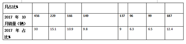 根据上表统计主流品牌2018年10月份明星车型销量及占比情况