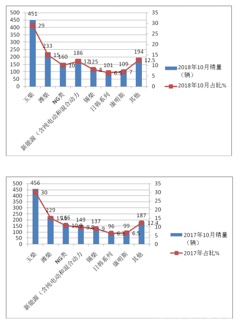 2、2018年10月份团体车市场上郑州宇通、苏州金龙、大金龙、小金龙等主要竞争对手的产品占有明显的优势,ZK6110HA、ZK6899HA、XMQ6117Y、XMQ6120C2、XMQ6858Y、KLQ6116TE3、XML6103J23、XML6127J13、XML6858J13等车型产品的销量表现不俗。