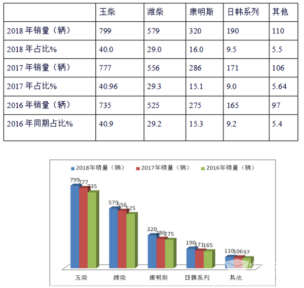 特点三:配置以玉柴等国产发动机为主体,同比有所下降,进口品牌以康明斯为主体,同比有所增长。