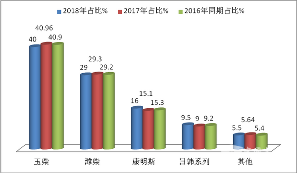 根据上牌数据统计,2018年前10月10-11米公路客车主要配置用的国产发动机大约占据到70%以上,比2017年同期有所下降,主要是玉柴发动机,其次是潍柴发动机,进口发动机主要以康明斯为主打,且同比增长。