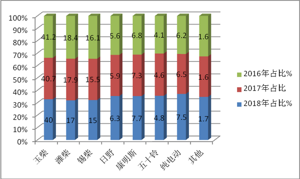 2、进口(或合资)品牌中,康明斯比例最大,其次是日野,再次是五十铃,但同比有升,总体趋于持上升态势。