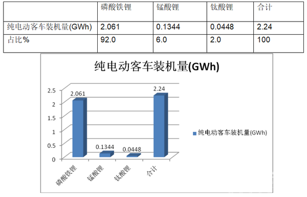 特点二:纯电动客车中,以安全性能最优的磷酸铁锂电池装机量占比93%,其次是锰酸锂电池占比6.0%,钛酸锂电池占比1%
