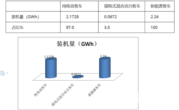 1、 2018年11月纯电动客车装机量为2.1728GWh,占比为97%,占据绝度优势地位。