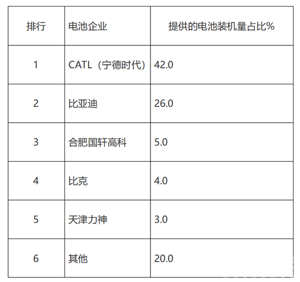 1、 电池供应商中,优势品牌占据的垄断地位非常明显,宁的时代(CATL)占据的份额近42.0%,可谓一家独大。