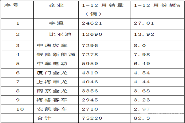 行业关注: 2018年12月及1-12月新能源客车市场简析