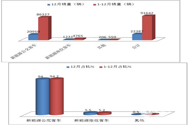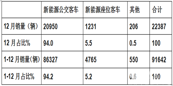 根据中国客车统计信息网,12月及1-12月6米以上新能源客车销量