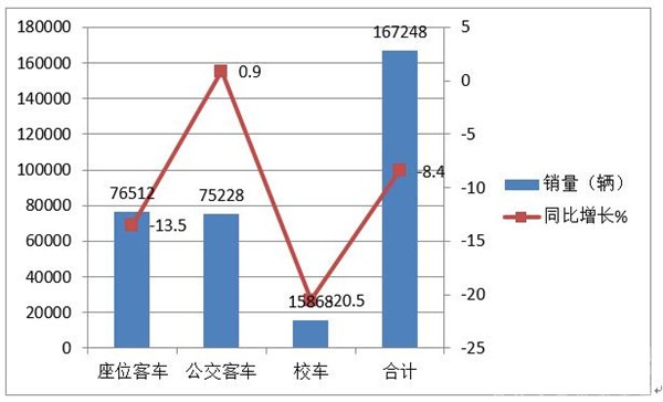 3、作为第一大细分市场的座位客车市场同比降幅为13.5%。
