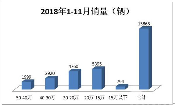2、销量比例最大的区间是15-20万价格细分市场,比例占据了34%,而2017年同期的比例为33.5%,同比有微升的趋势,