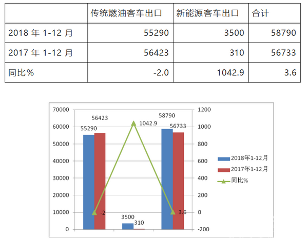 可以说,2018年1-12月客车出口市场的微弱增长,完全是由新能源客车出口的增长推动的。