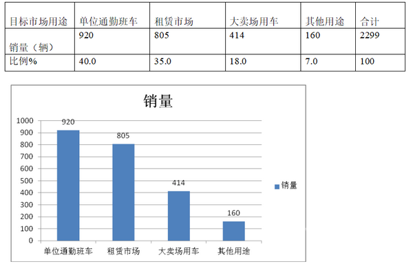 特点一、销量比例占据全国市场11%的份额;单位通勤车接近40%,比例最高;其次租赁市场用车,再次市场卖场用车