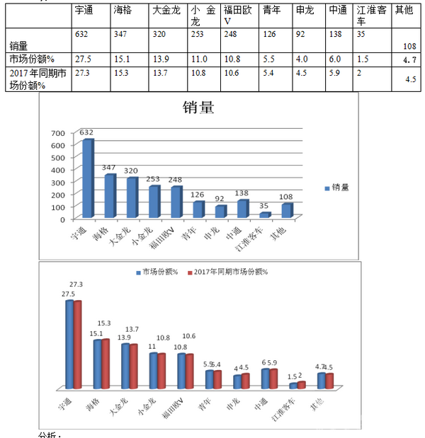 特点三、宇通市场占有率最高,其次是海格,再次是大金龙,第四是小金龙,第五是福田欧V,第六是中通客车