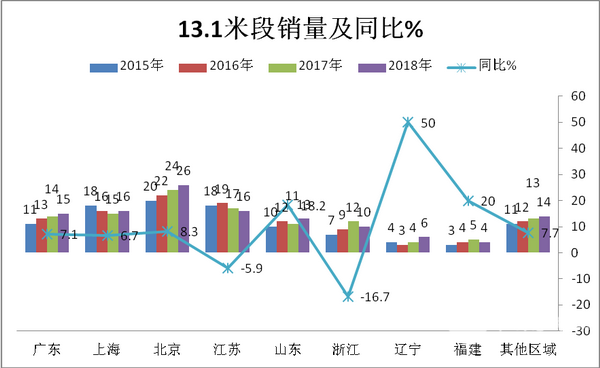 根据市场调研和不完全统计,2018年中国机场共采购摆渡车479辆,同比增长4.35%;其中13.8m销售241辆,13.1m销售120辆,11-12,米73辆,9-10米21辆,其他长度段24辆,在13.8m车型中,国产150辆,进口91辆,在13.1m车型中,国产105辆,进口15辆。其他区段未做统计,近年机场摆渡车销售区域主要流向分布情况: