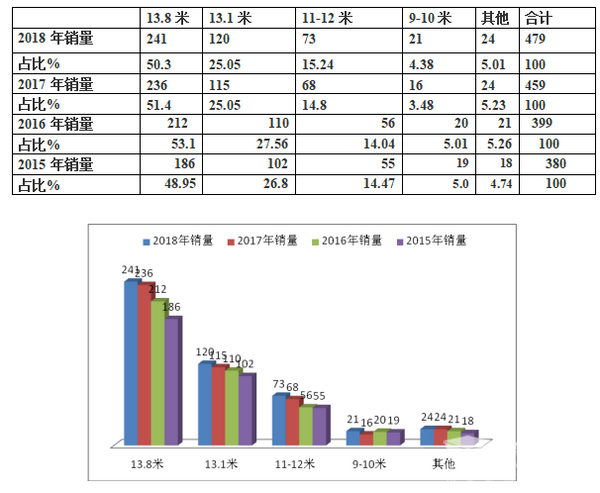 1)2018年13.8米长度段是机场摆渡车销量权重最大的细分车型,且占比超过50%,近年销量权重呈现不规律性。